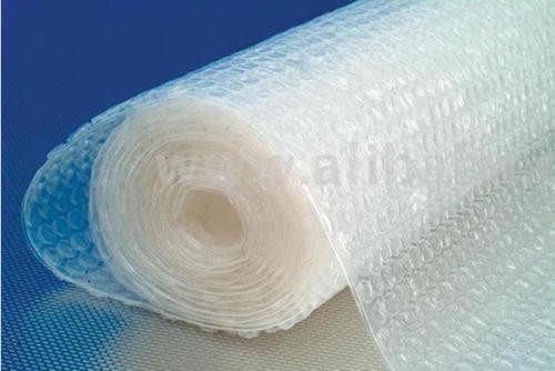 氣泡膜,是以高壓聚乙烯為主要原料,再添加增白劑、開(kāi)口劑等輔料,經(jīng)230度左右高溫?cái)D出吸塑成氣泡的產(chǎn)品。是一種質(zhì)地輕、透明性好、無(wú)毒、無(wú)味的新型塑料包裝材料,可對(duì)產(chǎn)品起防濕、緩沖、保溫等作用。也叫氣泡墊。由于氣墊膜中間層充滿空氣,所以體輕、透明、富有彈性,具有隔音、防震、防磨損的性能,廣泛用于電子、儀表、陶瓷、工藝品、家用電器、自車(chē)行,廚房、家具和漆品制品、玻璃制品及儀器等抗震性緩沖包裝??芍瞥蓺馀荽馀菖Fぜ埿欧獯?、汽車(chē)太陽(yáng)擋、隔熱座墊、隔熱保溫材料等。通過(guò)在塑料原料中加入不同的添加劑更可以制造防靜電等各種專用氣墊膜。防靜電氣墊膜用于包裝電子元件、組件,如板、卡等,能防止靜電又能起到緩沖防振的作用。